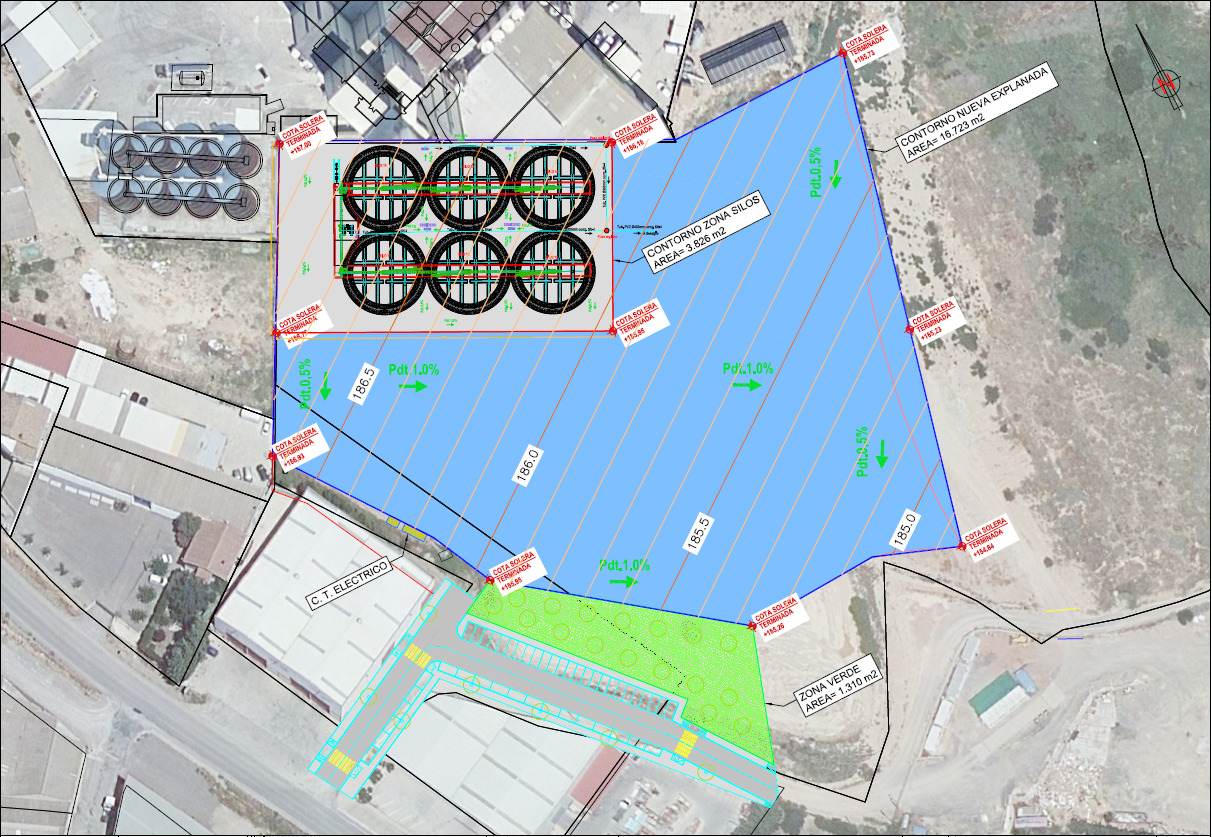 Trabajos en campo y gabinete para la construcción de nuevos silos en las instalaciones de Piensos Costa, en Fraga (Huesca). Con una superficie de 3.826m2, el proyecto cuenta con la construcción de seis nuevos silos, logrando conseguir un aumento de la producción y una mejora competitiva en el mercado.