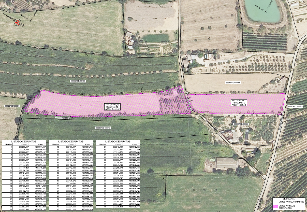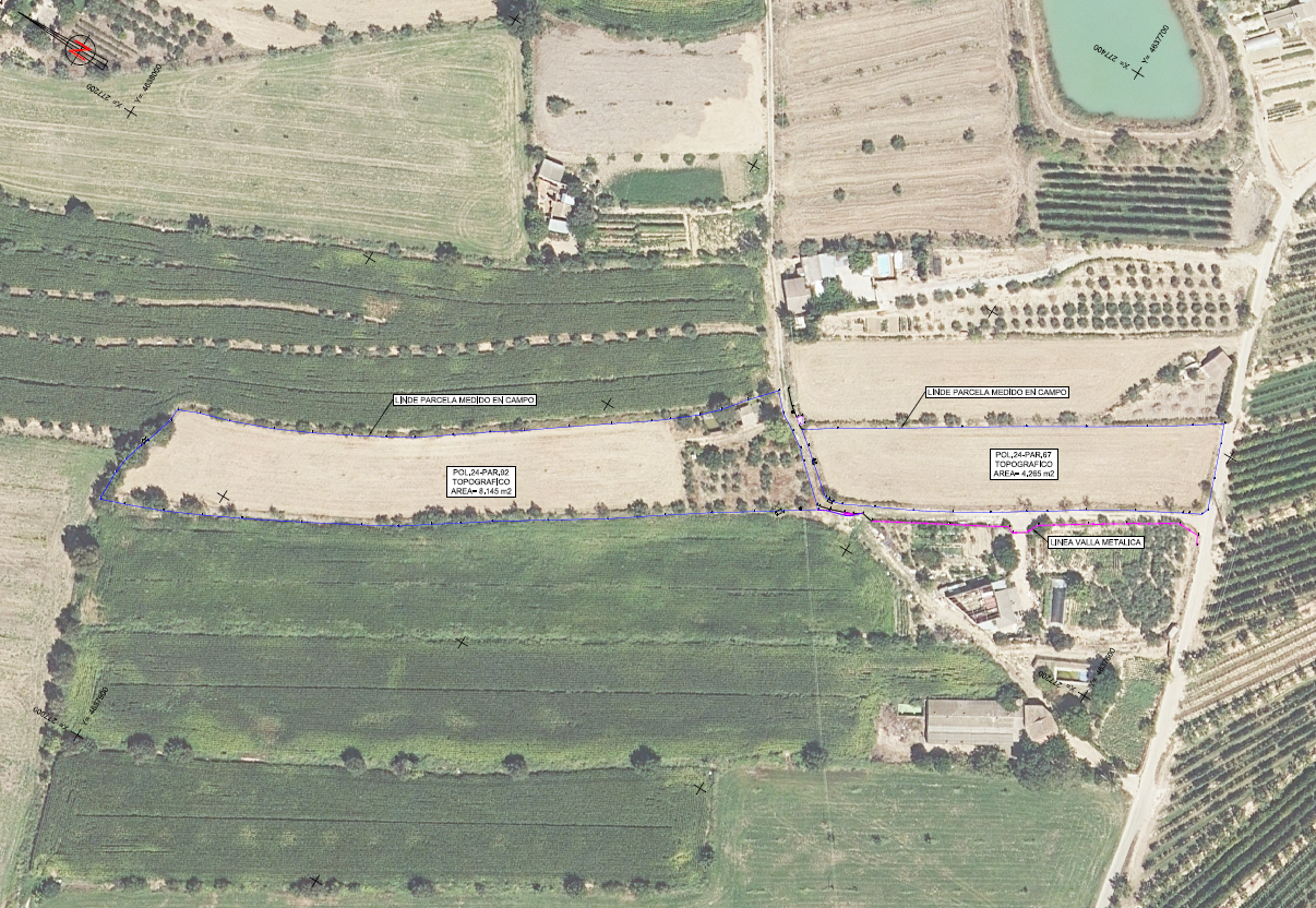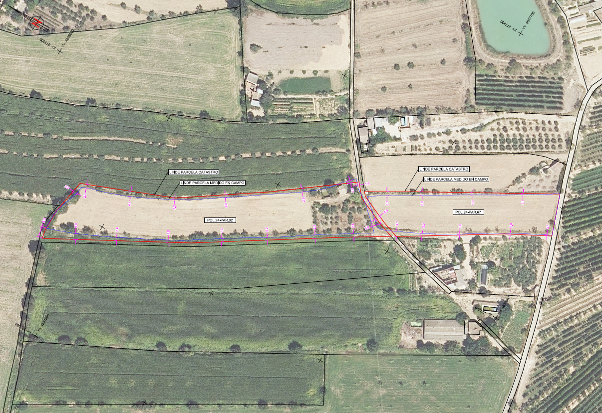 Servicios de topografía en campo y gabinete para la medición de la geometría real de varias parcelas ubicadas en el término municipal de San Esteban de Litera (Huesca) y elaboración de informe topográfico de las parcelas objeto del trabajo, con la finalidad de lograr una coordinación parcelaria entre el catastro y el registro de la propiedad.